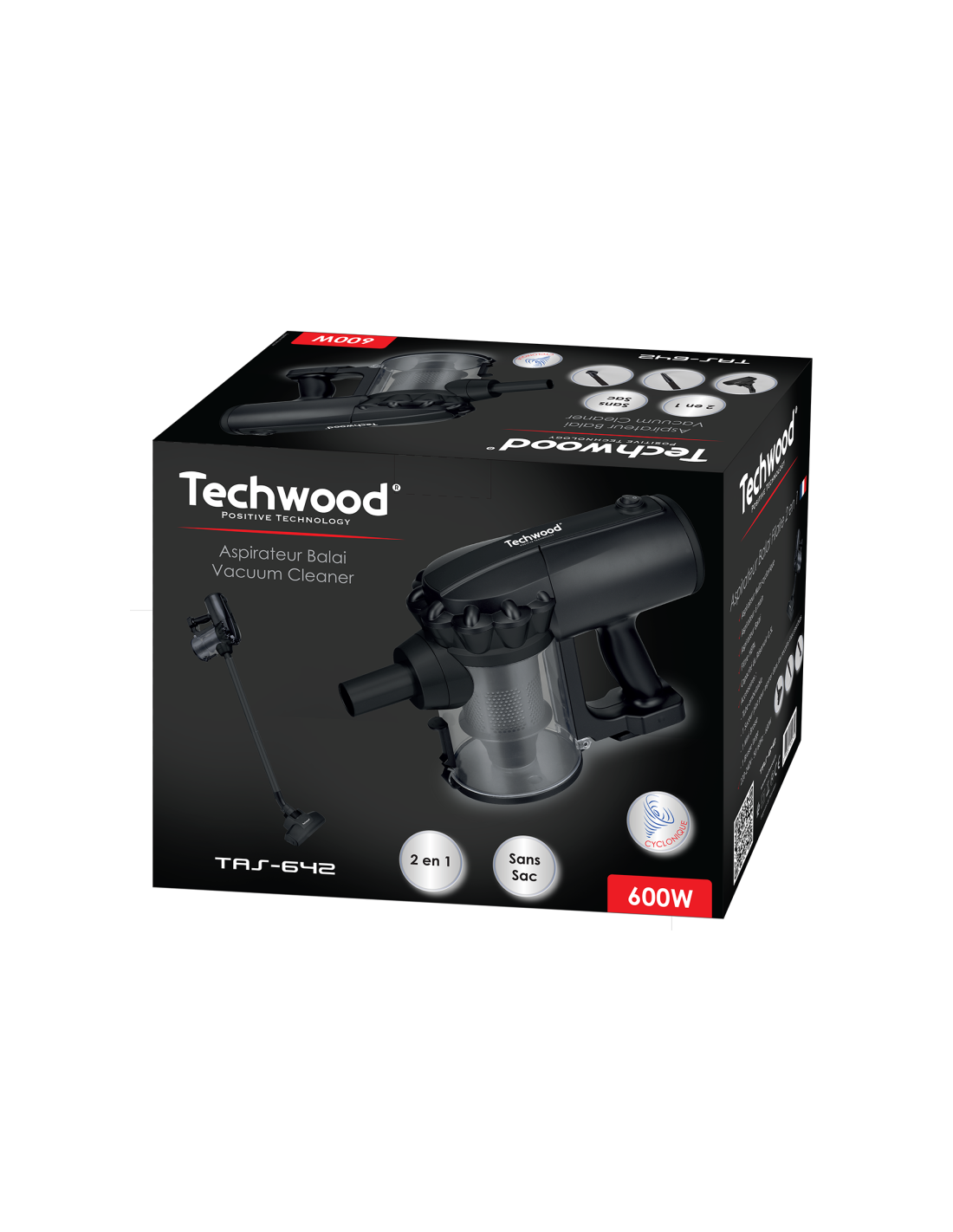 Aspirateur Balai 2 en 1- Aspirateur Multi cyclonique : Aspirateur à main, Aspirateur Balai - Filtre HEPA - Capacité du Réservoir 0,5L - Accessoires : Tube emboitable, 1 Suceur plat pour aspirer dans les recoins inaccessibles, 1 Mini Brosse, 1 Brosse large 2 positions - Poids 2.7 kg- Couleur Noir - Garantie 1 an