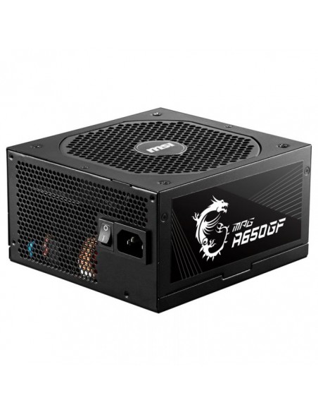 Bloc D'Alimentation Gamer MSI MPG A650GF > Puissance: 650 Watts - Norme: 80+ Gold - Format: ATX/EPS - Ventilateur: 140 mm - Alimentation électrique: 100 - 240 V CA / 50-60Hz - Conception entièrement modulaire des câbles - Fonctionnalités de sécurité: OVP, OCP, OPP, OTP, SCP, UVP - Connecteurs: 4 x PCI Express 6 + 2 Broches , 1 x ATX 24 Broches , 1 x Disquette Molex 4 Broches Femelle , 2 x +12V (Alimentation P8 - 2 x P4) , 8 x Alimentation Serial ATA , 4 x Molex (4 broches) Femelle - Dimensions: 86 x 150 x 160 mm - Couleur: Noir - Garantie: 10 ans