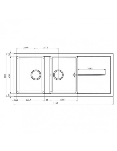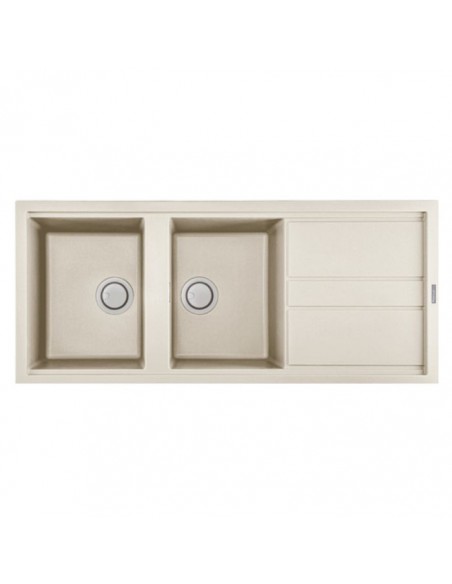 Évier De Cuisine Encastrable FOCUS 2 Bacs + égouttoir - Réversible - Installations standard - Sens de l'égouttoir: Droite - Mesure: 116 x 50cm - Encastrement: 114 x 48 cm - Bases: 80 cm - Profondeur du bac: 20 cm - Profondeur du second bac: 20 cm - Couleur: Champagne