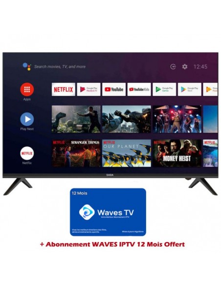 Téléviseur Full HD LED 43" -Smart TV- Résolution 1920 x 1080 pixels - 2x HDMI - 2x USB - 2x Haut-parleurs 8W - Audio Dolby Digital - Surround Sound - Récepteur intégré - Garantie 2 ans