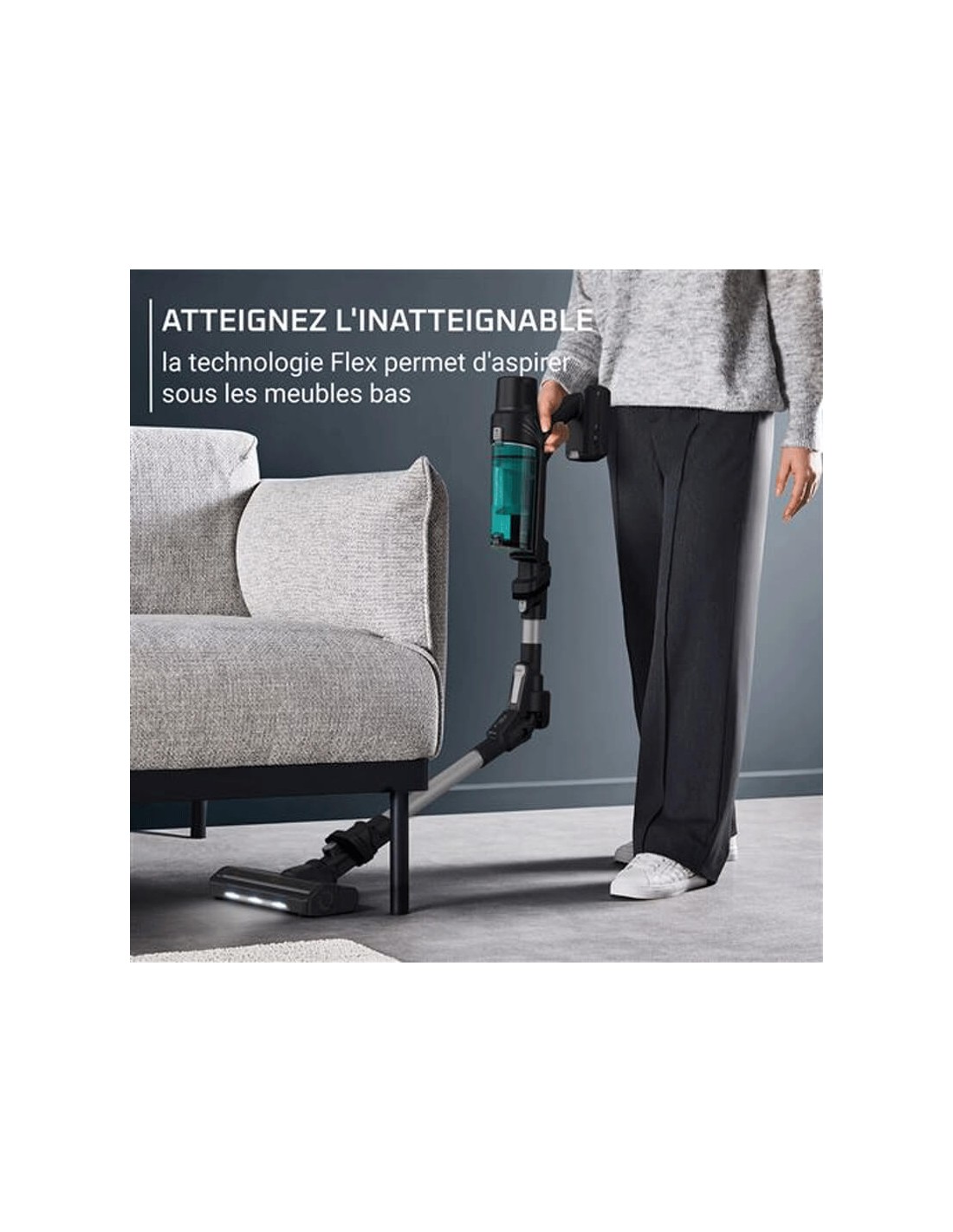 Avec le Aspirateur ROWENTA Balai Sans Fil FLEX 7.6, vous bénéficiez d’un appareil puissant et flexible, pensé pour simplifier le nettoyage du quotidien.