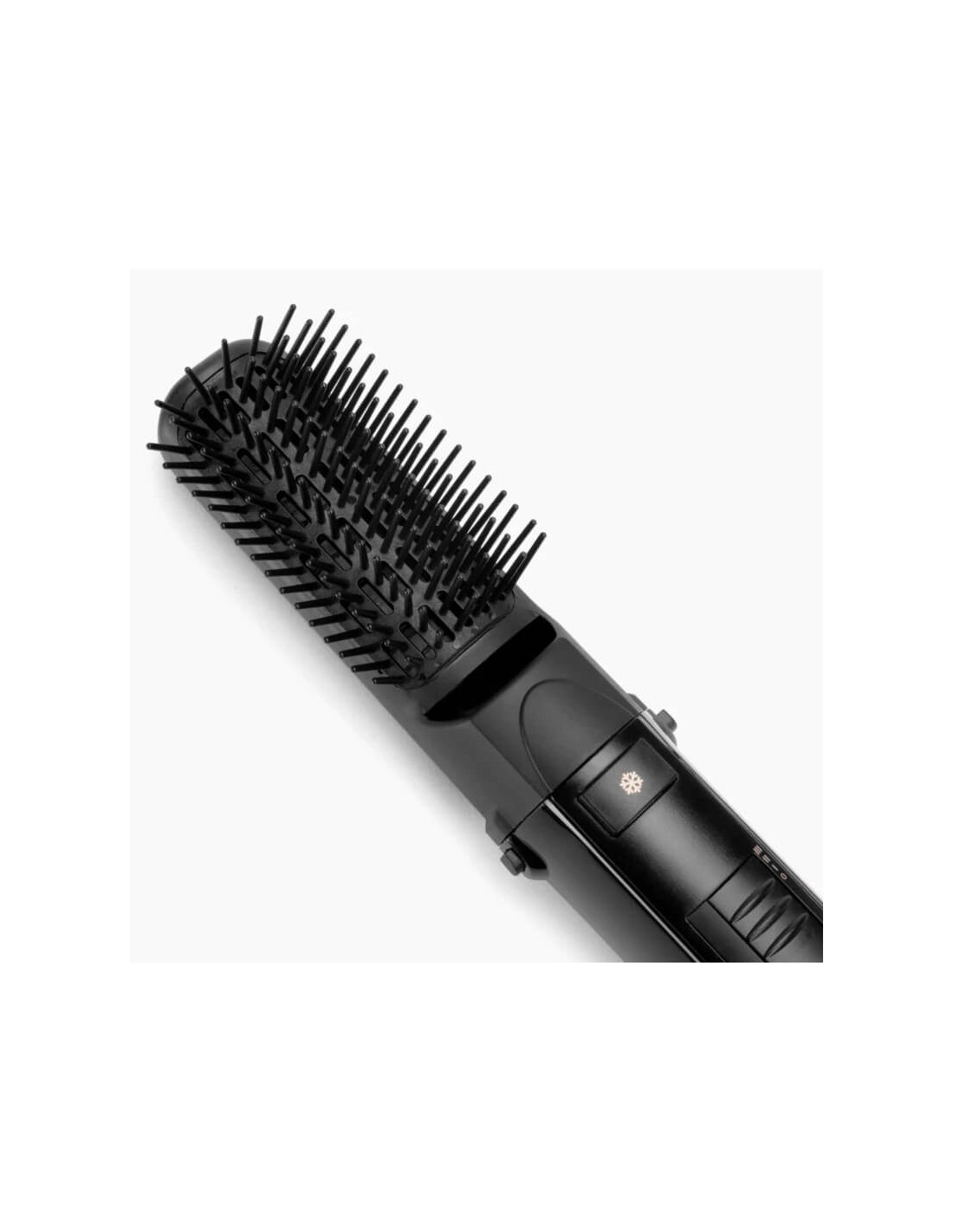 Elle inclut une brosse plate et une brosse à picots rétractable pour un coiffage polyvalent et facile.