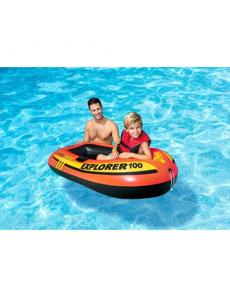 Faites une course de bateaux gonflable avec des amis ou faites une croisière tranquille autour de la piscine les jours d'été paresseux avec le Intex Explorer 100 d'une capacité d'une personne. Dimension :147 × 84 × 36cm