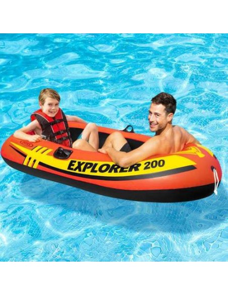 Faites une course de bateau avec des amis ou naviguez tranquillement autour de la piscine les jours d'été paresseux avec la capacité de 2 personnes Intex Explorer™ 200. Ce bateau super lumineux dispose d'une corde de maintien à l'avant, de verrous de rame et d'un plancher gonflable doux pour une croisière facile. • 2 chambres à air avec doubles valves • Saisir la corde à l'avant • Plancher gonflable pour plus de confort et de rigidité • Soudé sur les verrous de rame • Comprend un patch de réparation •Capacité de personnes : 2 • Capacité de poids maximale : 95 kg • Catégorie d'âge : 6+