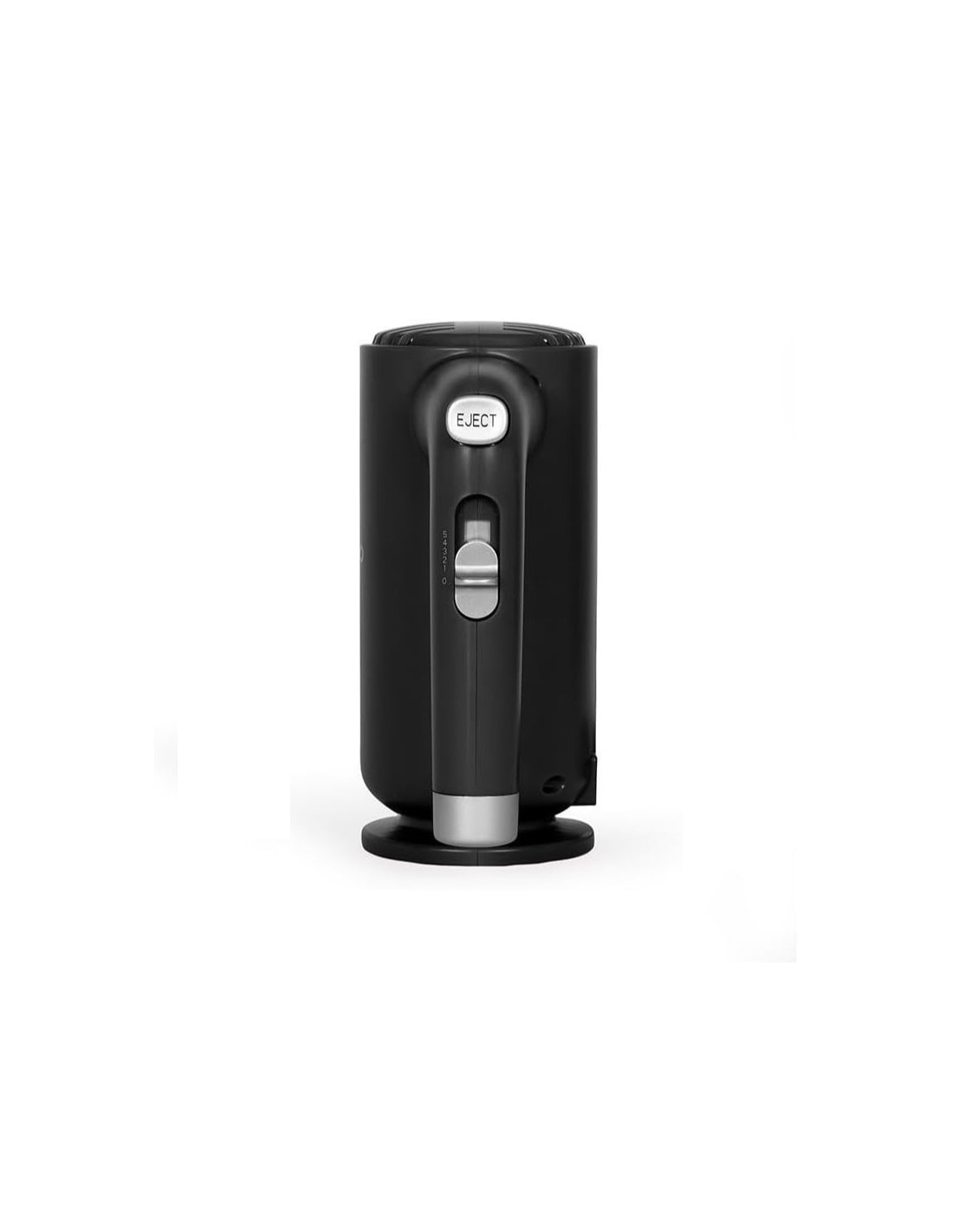 Pesant seulement 1 kg, ce batteur compact noir offre une prise en main confortable. Le bouton d’éjection simplifie le retrait des accessoires après utilisation.