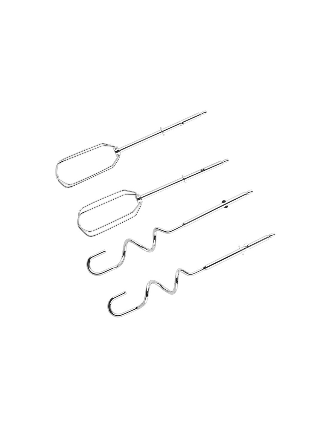 Il comprend 2 fouets et 2 crochets pétrins chromés, parfaits pour gâteaux, crème et pâtes maison.