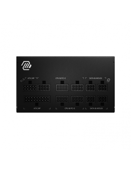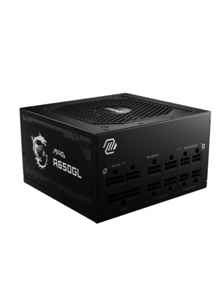 Boîte d'alimentation MODULAIRE MSI MAG A650GL - PUISSANCE 650W - TAUX D'EFFICACITÉ: 80 PLUS Or (jusqu'à 90 %) - TAILLE DU VENTILATEUR: 120 mm - ROULEMENT DE VENTILATEUR: Roulement dynamique fluide - PFC actif - PROTECTION: OCP/OVP/OPP/OTP/SCP/UVP - 1x ATX (24 BROCHES) - 2x EPS (4+4 BROCHES) - 4x PCI-E (6+2 BROCHES) - 6x SATA (15 BROCHES) - 4x MOLEX (4 BROCHES) - 1x FDD (4 BROCHES) - TENSION D'ENTRÉE: 100~240 VCA - DIMENSIONS: 140 x 150 x 86 mm - Garantie 1 an