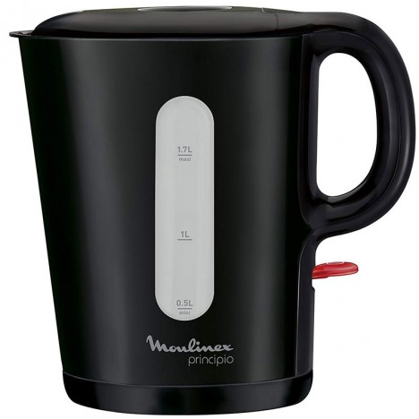 BY105810 - Bouilloire Moulinex Puissance: 2400 Watt - Capacité: 1.7 Litres - Sans fil - Indicateur de niveau d'eau - Niveau d'eau visible - Filtre anticalcaire amovible - Ouverture assistée - Matière du corps: Plastique - Voyant lumineux marche/arrêt - Poignée ergonomique - Poids: 0,9 kg - Couleur: Noir - Garantie: 1 an
