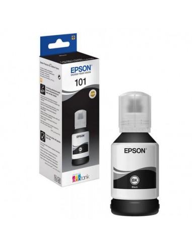 Bouteille d'encre original Epson 101 - Capacité : 127 ml - Nombre total de pages (Noir & Blanc) : 7500 pages - Compatible avec les imprimantes Epson EcoTank L4150/4160 /L6160/L6170/L6190 - Couleur : Noir - Garantie : 1 an