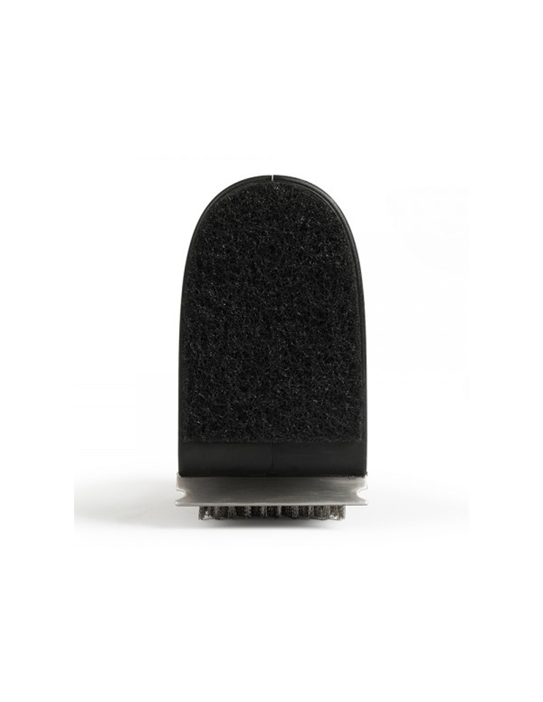 Pour un nettoyage barbecue rapide, grattez d’abord les résidus avec le racloir, puis utilisez la brosse et l’éponge intégrée pour un entretien complet.