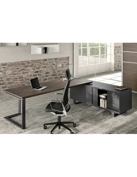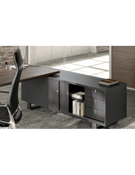 Bureau de direction SOUTH - Bureau + Retour + Element + Caisson - Bureau avec deux chaises visiteurs ISO avec deux rangements séparés du même modèle et une table basse - Dimensions : 200 x 90 x 75 cm - 180 x 90 x 75 cm