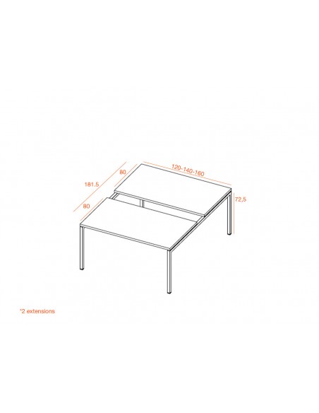 Bureau partagé 6 personnes - Modèle : SPIRIT-P - Dimensions : 160 x 160 x 75 cm - Matière : bois mélaminé, lavable, anti-rayures et antireflets - Structure : poutre fixe 60 x 30 mm en acier laqué époxy - Pieds tubulaires, 40 x 40 mm en acier laqué époxy