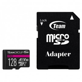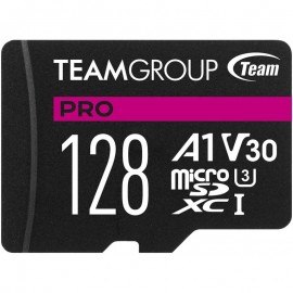 Carte Mémoire TeamGroup Micro SDXC Pro V30 U3 128 Go + Adaptateur (TPUSDX128GIV30A1P0)