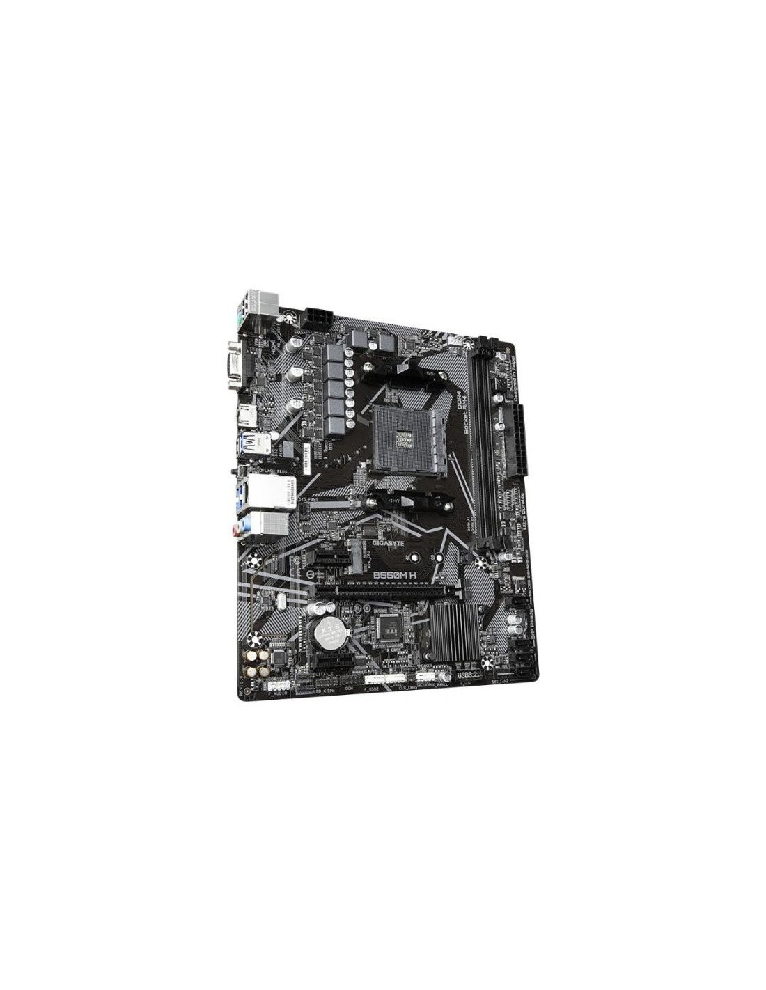 Carte Mère GIGABYTE AMD AM4 B550M H - Réf : B550M-H - Socket AMD AM4 pour processeurs Ryzen de 3e génération - facteur de forme Micro ATX - 1 slots PCI-Express x16 - 2 emplacements PCI-Express x1 - 4 ports SATA 6 Gbit/s - 1 port M.2 - 2 emplacements RAM - 64 Go de RAM maximum pris en charge - RGB FUSION 2.0 prend en charge les bandes LED adressables et LED RVB