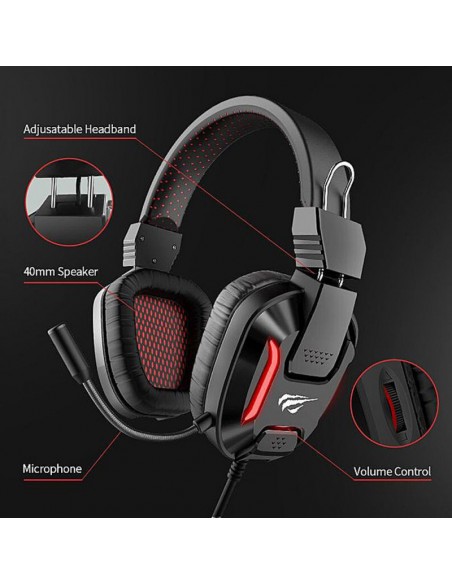 Casque Micro Gamer Havit HV-H2168D - LED Rouge - Drivers 40mm - Sensibilité 105db-+3db (Casque) / -38db+-3db (Micro) - Interface Jack 3.5mm + USB - Fréquence 20HZ to 20khz - Garantie 1 an