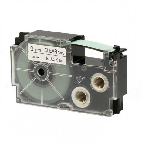 Cassette à Ruban CASIO - Réf : XR-9X1 - Type de ruban: Titreuse - Largeur : 9 mm - Longueur de bande: 8 m - Couleur d'impression Noir sur fond Transparent - Compatible avec: KL-60, KL-120, KL-130, KL-820, KL-7400, KL-G2, KL-HD1 .