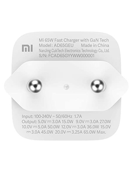 Chargeur XIAOMI Mi 65 W - Chargeur pour Smartphone et Ordinateur Portable - Compatible avec Ordinateur Portable Xiaomi/Apple/Huawei/ASUS/HP/Lenovo/Dell - câble USB-C Inclus - Source d'alimentation : Câble électrique, Alimenté par Pile - Poids de l'article : 4.94 Onces - Puissance : 65 Watt - Paramètres de sortie : 5 V ⎓ 3 A , 9 V ⎓ 3 A , 10 V ⎓ 5 A , 12 V ⎓ 3 A , 15 V ⎓ 3 A , 20 V ⎓ 3,25 A , 65 W MAX