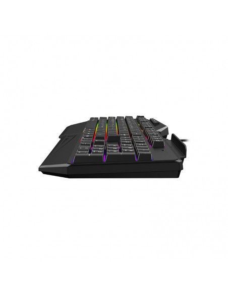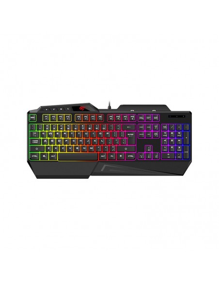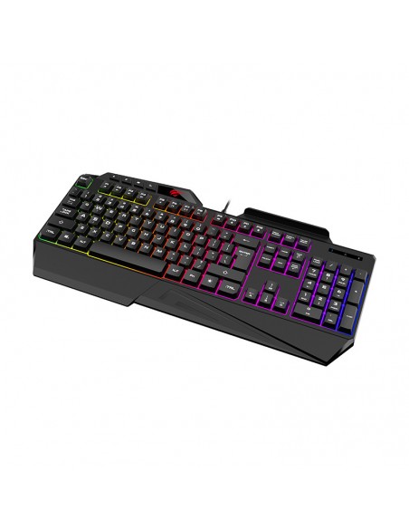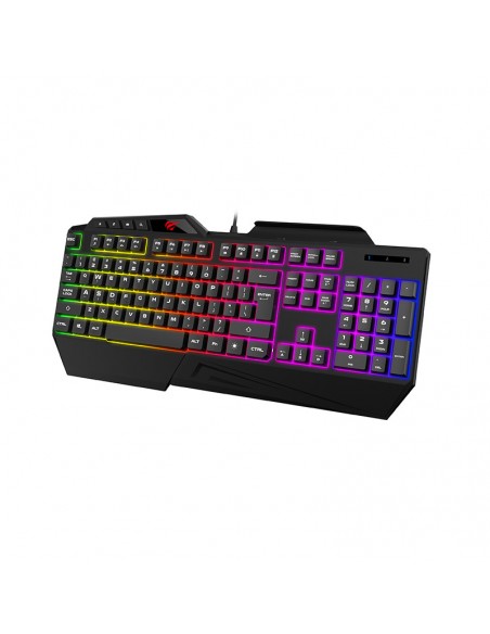 Clavier Gaming Havit KB488L - Technologie de Connectivité Filaire - Norme du clavier QWERTY - Interface avec l’ordinateur USB - Clavier Gamer avec touches semi-mécaniques - Type de touches multimédias standard - Rétro-éclairage RGB - Support de téléphone mobile sur le clavier - FN touches multimédia – Type de touches multimédias standard - Couleur Noir - Garantie 1 an