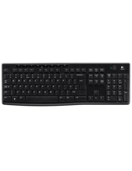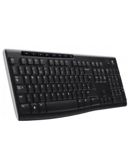 Clavier LOGITECH K270 - Technologie de Connectivité: Sans fil - Fréquence Sans fil 2.4 GHz - Clavier: Azerty Français - Portée sans fil supérieure à 10 m - Huit raccourcis pratiques (par exemple, Internet, e-mail, touches multimédia, volume) - Pavé numérique - Compatibilité avec: Microsoft Windows XP/Vista/7/8 - Dimensions: 149 x 441,5 x 18 mm - Couleur: Noir - Garantie: 1 an