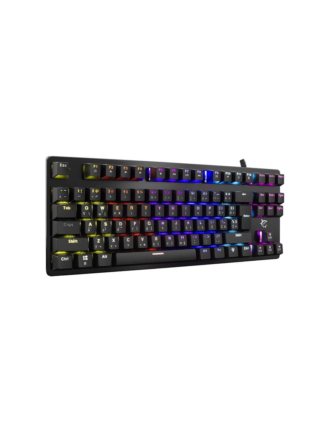 Clavier Mécanique WHITE SHARK Gamer SPARTAN GK-1925 - Technologie de Connectivité: Filaire -Interface avec l'ordinateur: USB - Norme du clavier: QWERTY - Nombre de touches: 87 touches mécaniques + 12 fonctions multimédia (FN + F1 à F12) - Rétro-éclairage RVB - Longueur de câble: 1.8 mètre - Matériel: Métal / Plastique - Dimensions: 355 x 135 x 20 mm - Poids: 640g - Couleur: Noir - Garantie: 1 an