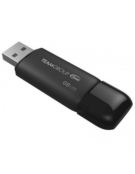 Clé USB TeamGroup C173 - Capacité 32 Go - Interface USB 2.0 - Compatible avec Windows 10 / 8.1 / 8 / 7 / Vista, MAC OS 10.6 ou plus, Linux 2.6 ou plus - Couleur Noir - Dimensions 54.9 x 20.5 x 9.5 mm - Poids 9g - Garantie à vie
