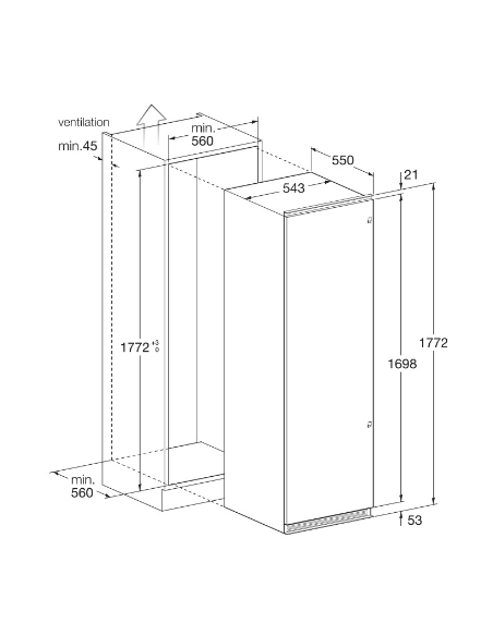 Congélateur Encastrable FOCUS - No Frost - Tiroirs de congélation transparents - Classe énergétique A + - Volume: 220 litres - Classe climatique: SN-T - 42 dB (A) Niveau sonore - Garantie : 2 ans