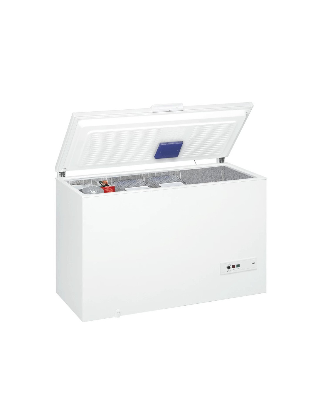 Le congélateur horizontal blanc Whirlpool dispose d’un système de contrôle mécanique intuitif permettant un réglage facile de la température selon les besoins.