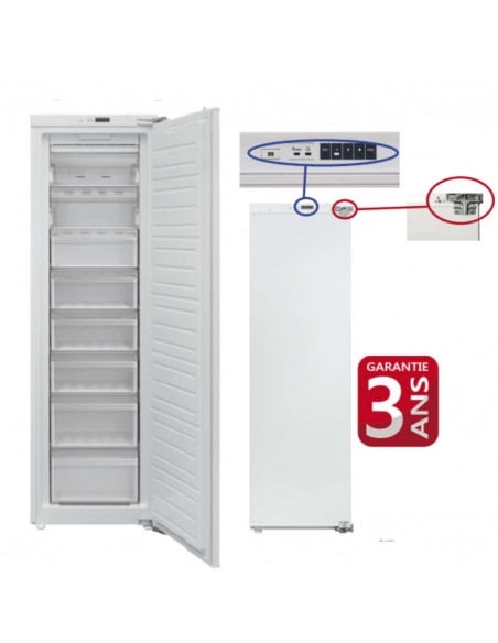 Congélateur silencieux encastrable garantit une intégration harmonieuse dans la cuisine sans nuisances sonores. Grâce à sa conception robuste et sa technologie avancée, il assure une longue durée de vie et un excellent maintien de la chaîne du froid, ce qui le rend idéal pour la conservation de vos produits alimentaires à long terme.