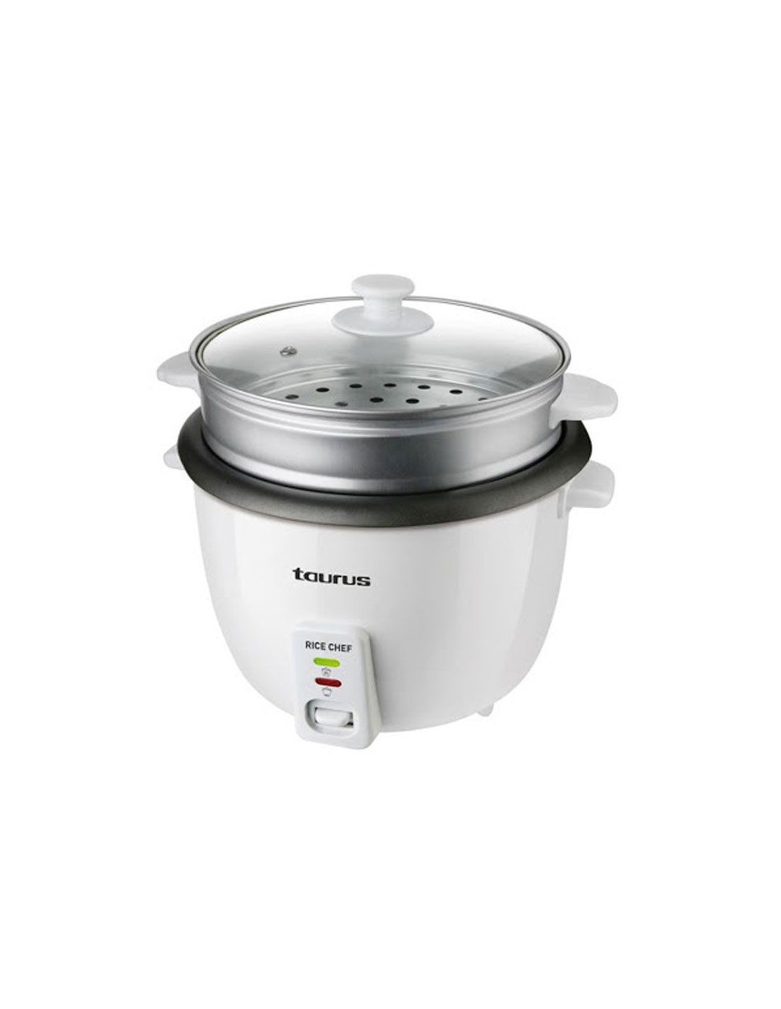 Réf : 968934 - Cuiseur À Riz TAURUS – Puissance : 700 Watts – Conteneur amovible de 1,8 L – Revêtement antiadhésif – Fonction de cuisson et de maintien de la chaleur – Goûtez rapidement un riz parfait et savourez une cuisine saine – Obtenez 6 à 7 portions avec Rice Chef – Couleur : Blanc – Garantie : 1 an