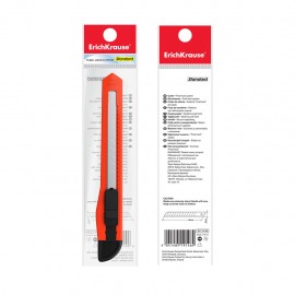Cutter push-lock ErichKrause® Standard 9 mm - Réf : 19146 - Cutter avec système de retenue de la lame à verrouillage par poussée et snapper intégré pour une séparation sûre d'un segment de lame. Un corps de cutter en plastique léger et durable. Fourni avec une lame segmentée en acier résistant à l'usure avec affûtage double face.