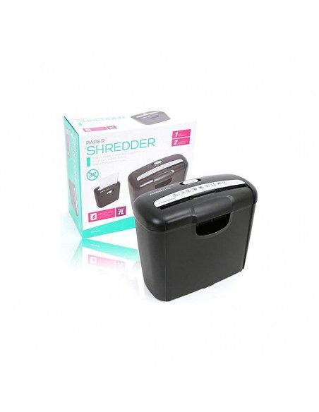 Destructeur de papiers - Capacité 7 litres - Largeur du papier à entrer: 220 mm - Détruit jusqu'à 6 feuilles - Vitesse: 6 m/min - Écrase jusqu'à 2,9 m par minute - Fonction de détection du papier: démarre lorsque le papier est légèrement inséré dans la fente d'entrée - Dimensions: 270 x 120 x 240 mm