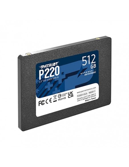 Disque Dur Interne PATRIOT P220 - Capacité de stockage : 512 Go SSD - Interface : SATA III - Format de Disque: 2.5" - Vitesse en lecture : 550 Mo/s - Vitesse en écriture : 500 Mo/s - Prise en charge des informations de santé SMART - Systémes d'exploitation Compatible : Windows® 7*/8.0*/8.1/10 - Offre des performances et une productivité globales supérieures - Garantie : 1 an