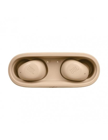 Écouteurs JBL Wave Buds - Connectivité: Bluetooth 5.2 - Autonomie: 32 heures (8 h + 24 h) - Temps de Charge: 2 heures - Recharge rapide (5 min=1h de lecture) -- Controle tactile - Microphone intégré - Appels mains-libres - Ambiant Aware, Restez conscient de votre environnement - Bouton multifonction TalkThru - Résistant à l'eau: IP54 - Taille des Hauts-Parleurs: 8mm - Fréquence: 20 - 20KHz - Impédance: 16ohms - Couleur: Beige - Garantie: 1 an