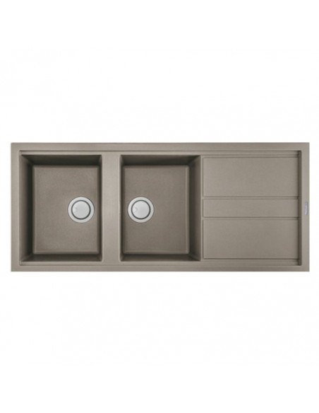 Évier De Cuisine Encastrable FOCUS 2 Bacs + égouttoir - Réversible - Installations standard - Sens de l'égouttoir: Droite - Mesure: 116 x 50cm - Encastrement: 114 x 48 cm - Bases: 80 cm - Profondeur du bac: 20 cm - Profondeur du second bac: 20 cm - Couleur: Grège