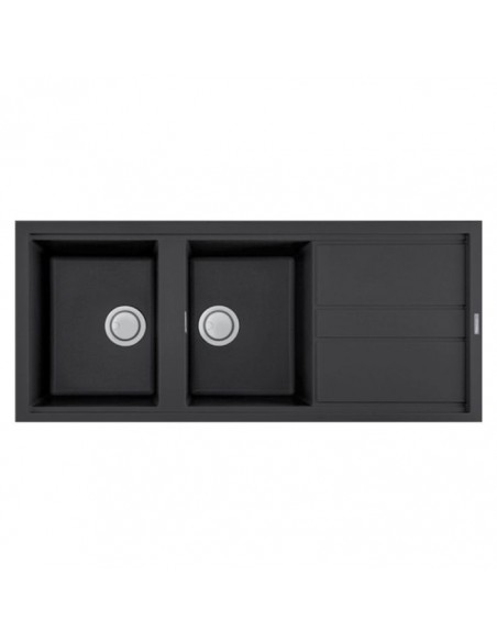 Évier De Cuisine Encastrable FOCUS 2 Bacs + égouttoir - Réversible - Installations standard - Sens de l'égouttoir: Droite - Mesure: 116 x 50cm - Encastrement: 114 x 48 cm - Bases: 80 cm - Profondeur du bac: 20 cm - Profondeur du second bac: 20 cm - Couleur: Noir