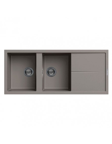 Évier De Cuisine Encastrable FOCUS 2 Bacs + égouttoir - Réversible - Installations standard - Sens de l'égouttoir: Droite - Mesure: 116 x 50cm - Encastrement: 114 x 48 cm - Bases: 80 cm - Profondeur du bac: 20 cm - Profondeur du second bac: 20 cm - Couleur: Grège