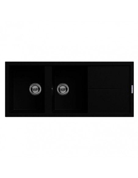Évier De Cuisine Encastrable FOCUS 2 Bacs + égouttoir - Réversible - Installations standard - Sens de l'égouttoir: Droite - Mesure: 116 x 50cm - Encastrement: 114 x 48 cm - Bases: 80 cm - Profondeur du bac: 20 cm - Profondeur du second bac: 20 cm - Couleur: Noir