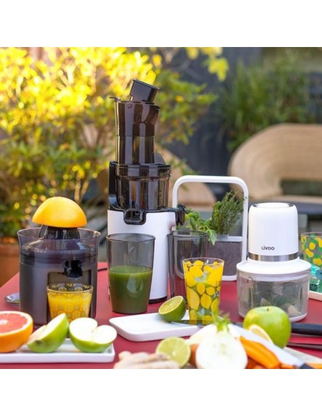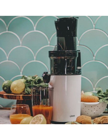 Extracteur De Jus LIVOO Compact - Puissance: 20 0Watts - Capacité réservoir à jus: 0.8 Litre - Capacité pulpe: 0.6 Litre - Vitesse: 40 à 80 tr/min - Système anti-gouttes - Fonction reverse pour décoincer les aliments pendant l'extraction - Filtre en acier inoxydable - Facilement démontable - Bec verseur avec clapet de fermeture pour un service au verre - Couleur: Noir - Garantie: 1an