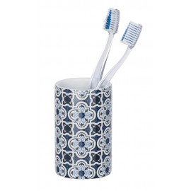 Gobelet WENKO Murcia céramique - Réf : 23200100 - Gobelet à brosser les dents de bon goût pour le rangement des brosses à dents et de la pâte dentifrice - En céramique haut de gamme - Imprimé d'ornements bleus - Dimensions (L/l x h) : Ø 6,5 x 11 cm