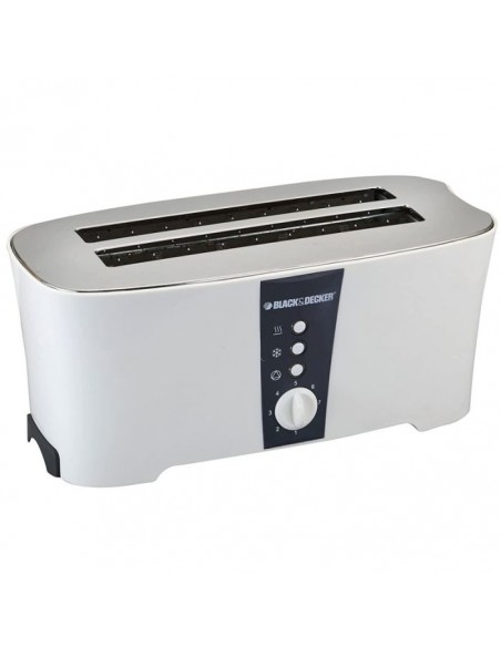 Grille Pain BLACK & DECKER - Puissance: 1350 Watts - Capacité de grille-pain: 2 tranches - Contrôle électronique du brunissement Plateau à miettes - Cool Touch Body pour un nettoyage facile - Commandes électroniques pour les fonctions de réchauffage, de décongélation et d'annulation - Matériel: Acier inoxydable - Couleur: Blanc - Garantie: 1 an