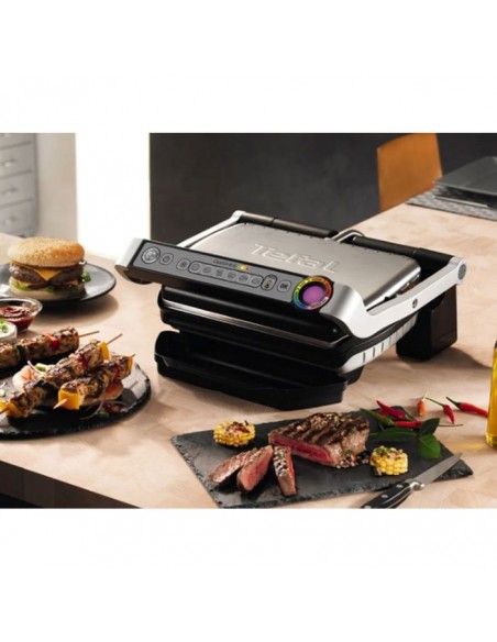 Grille A Viande TEFAL Intelligent - Puissance: 2000W - Capacité: Jusqu'à 4 personnes - Nombre de programmes: 6 programmes (burger, sandwich, poisson, viande rouge, poulet, saucisse) - Thermostat réglable - Grille intelligente - Indicateur de cuisson automatique - Revêtement anti-adhésif - Plaques amovibles - Facile à nettoyer - Compatible lave-vaisselle - Facile à ranger - Bouton ON / OFF - Longueur du cordon d'alimentation: 0.8 m - Surface de cuisson: 30 x 20 cm - Couleur: Chrome - Garantie: 1an