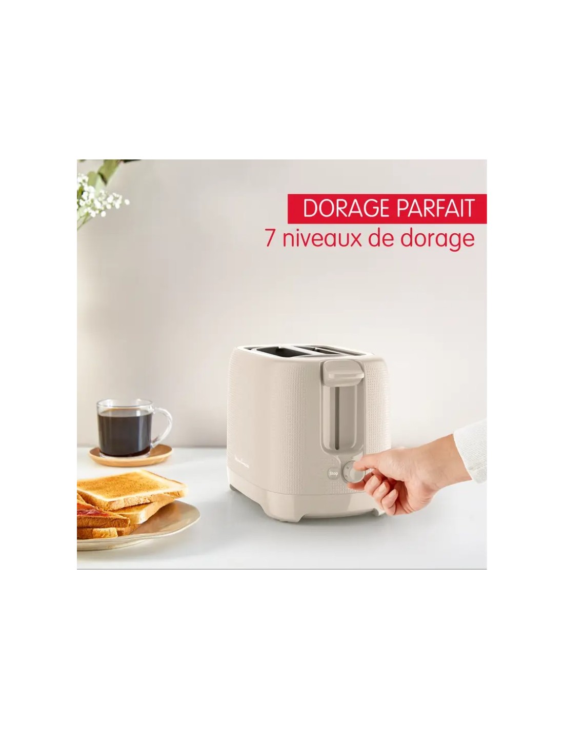 Le Grille-pain Moulinex Morning LT2M0B10 combine performance et simplicité. Les 2 fentes extra-larges accueillent facilement toutes sortes de tranches. Avec 7 niveaux de dorage, ajustez le brunissage selon vos préférences, du toast léger au croustillant. Le centrage automatique et la poignée surélevée permettent de retirer les tranches sans risque.