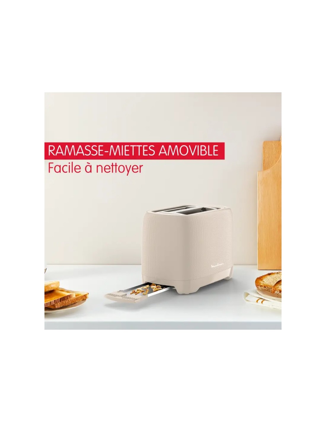 Avec ses 850 W, le Grille-pain Moulinex Morning LT2M0B10 chauffe rapidement pour un toast uniforme et prêt en quelques minutes.