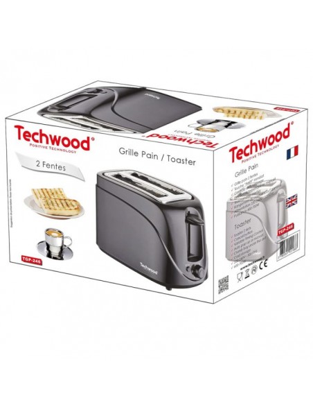Grille Pain 2 Fentes TECHWOOD TGP-246 - Puissance: 700W - Touche “Arrêt” immédiat - Contrôle du brunissage - Ejection automatique ou manuel - Tiroir ramasse miettes - Rangement du cordon sous l’appareil - Alimentation 220-240 V~ 50Hz - Couleur Noir - Garantie 1 an