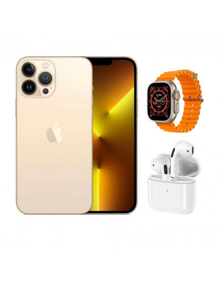 iPhone 13 Pro - Écran 6,1" OLED Super Retina XDR HDR - Résolution: 2532 x 1170 pixels à 460 ppp - Processeur: Puce A15 Bionic (5 nm) Hexa-core ( 2x3.22 GHz Avalanche + 4xX.X GHz Blizzard) - GPU Graphics Apple 5 Coeurs - Système d'exploitation: iOS 15 - Mémoire RAM: 6 Go - Stockage: 128 Go - Appareil photo Arrière: Trio Pixels: 12 MégaPixels Téléobjectif avec ouverture ƒ/2,8 + 12 MégaPixels Grand‑angle avec ouverture ƒ/1,5 + 12 MégaPixels Ultra grand‑angle avec ouverture ƒ/1,8 et champ de vision de 120° - Appareil Avant: 12 MégaPixels avec Ouverture ƒ/2,2 - Video 4K HDR avec Wifi, Réseau 5G , GPS , NFC et Bluetooth 5.0 - Batterie: Li-Ion 3095 mAh - Face ID - Couleur: Gold - Garantie: 1 an