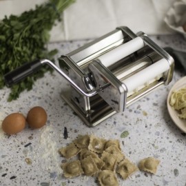 Machine à Ravioli et Spaghetti LIVOO - Silver (MEN41) - Réf : MEN41 - laminoir 9 positions de 6 à 1 mm pour fettuccine, spaghetti, lasagnes et ravioli, 1 accessoire découpe - pâtes, 1 Manivelle, 1 moule à ravioli : bandes de 2 ravioli dans la largeur fixation au plan de travail, qualité professionnelle, nettoyage facile - Garantie : 2 ans