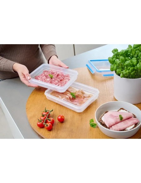 Avec la Boîte MasterSeal Fresh, conservez vos aliments frais plus longtemps ! MasterSeal Fresh, Lot de 2 boîtes de conservation alimentaire 0,6 L. Plastique, Rectangulaire Découvrez une solution de conservation des aliments hygiénique permettant de garder la nourriture fraîche plus longtemps. Avec son design 100 % hermétique, adapté au micro-ondes et résistante au froid, elle est parfaite pour conserver, transporter et réchauffer la nourriture en toute facilité, sans changer de contenant.
