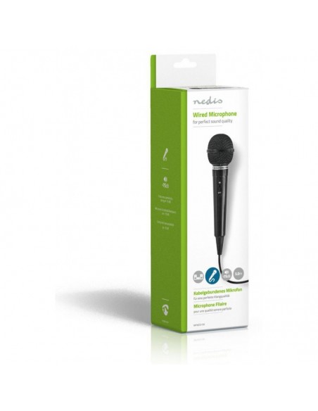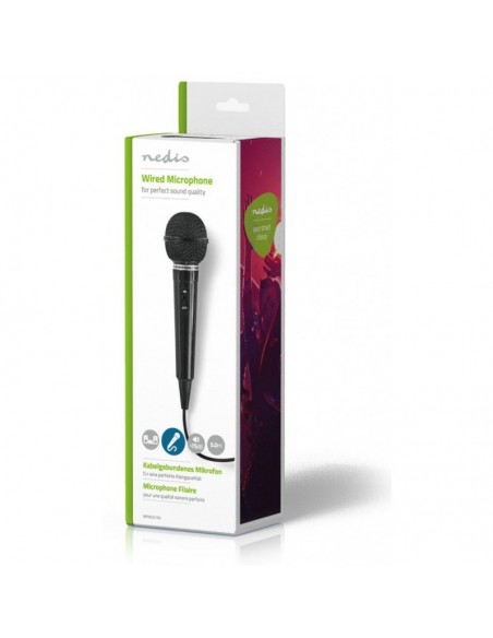 Microphone Filaire Nedis MPWD01BK - Idéal pour le karaoké - Impédance: 600 Ohm - Réponse en fréquence: 80Hz-12KHz - Sensibilité: -75 dB - Bouton marche/arrêt intégré - Sortie de connexions: 1x 6.35mm - Matériau: Plastique - Longueur du cordon: 5.0 m - Couleur Noir - Garantie 1 an
