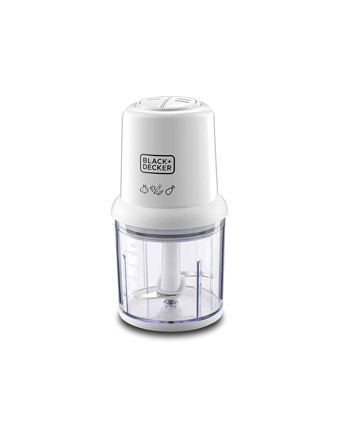 Le Mini Hachoir Électrique BLACK&DECKER fonctionne avec 300W, assurant un hachage rapide et homogène.