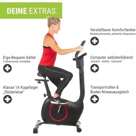 Vous pouvez commencer votre entraînement avec une résistance minimale, puis augmenter progressivement. Cela s'avère particulièrement important pour les personnes âgées ou pour une sollicitation tout en douceur après des blessures sportives. Vous pouvez régler l'intensité d'entraînement, la résistance sur 8 niveaux, très simplement et rapidement à l'aide d'un bouton rotatif.
